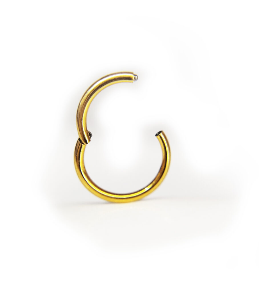Argolla fabricada en titanio grado implante, el mismo material utilizado en implantología médica y odontológica. Esto garantiza máxima biocompatibilidad, resistencia y seguridad para el cuerpo, siendo ideal para pieles sensibles y perforaciones recientes.